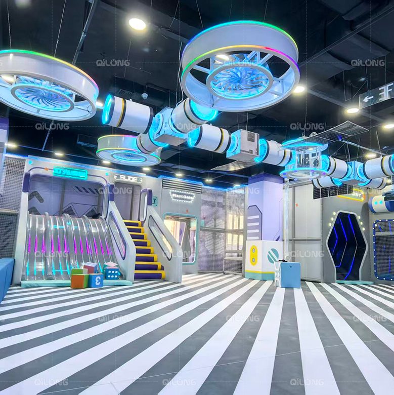 This vibrant indoor playground boasts a futuristic, space - themed design with bold colors. It features a massive ball pit, spiral slides, a spinning carousel.This indoor playgrounds offer a distinctive and futuristic experience, providing a chance to unleash creativity. Parents are drawn not just to giving their kids a fun - filled time but also to capturing unforgettable moments amid the captivating, space - themed structures.